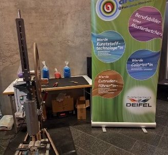 • Auf dem SBIT am 14.03.2026 in Schweinfurt nutzte unser Mitglied Deifel Buntfarbenfabrik die Gelegenheit, für seine Ausbildungsberufe zu werben. Anhand unserer manuellen Spritzgießmaschine konnte praxisnah vorgeführt werden, in welchem Prozess Kunststoffteile entstehen.